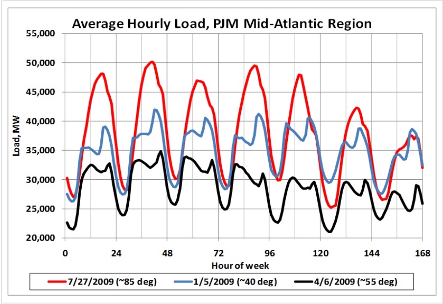 To understand why, consider the typical demand curve for electricity in the Mid-Atlantic, including Virginia. Demand can be almost twice as high at 5 p.m. as it is at 5 a.m., especially on a hot summer day with air conditioners running.